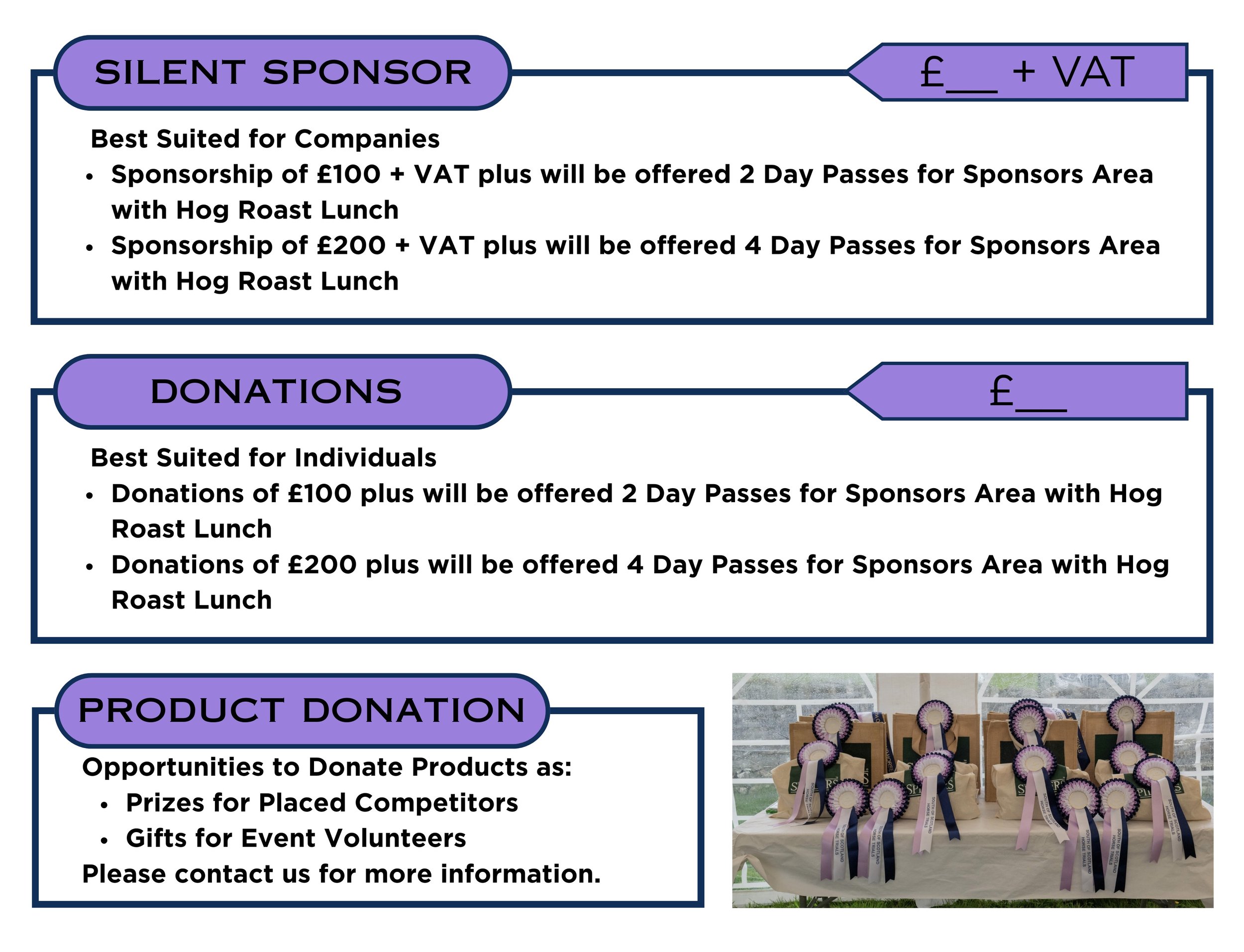 A vast variety of different sponsorship packages have been put together, please get in touch using the form if you would like to be sent the sponsorship brochure or have any further questions.